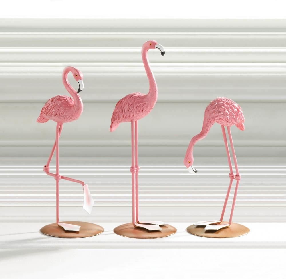 • Celebrate summer in style with these fun table top flamingo figurines. Fun and colorful, this trio of flamingo figurines will look great displayed together or individually around the house.